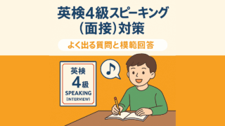 英会話勉強 英検4級スピーキング(面接)対策:よく出る質問と模範回答 〜はじめてのスピーキングテストでも安心!〜「英検4級のスピーキングってどんな内容?」「面接官に何を聞かれるの?」そんな不安を持つ受験生や保護者の方に向けて、この記事では試験の流れ・出題傾向・よく出る質問・模範回答をやさしく解説します。🎤 英... 2025.10.09 英会話勉強