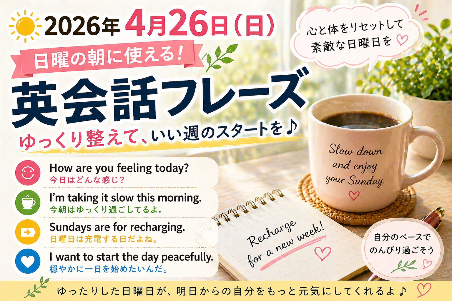 今日はそんな日曜の穏やかな朝にぴったりな英会話フレーズをご紹介します。
