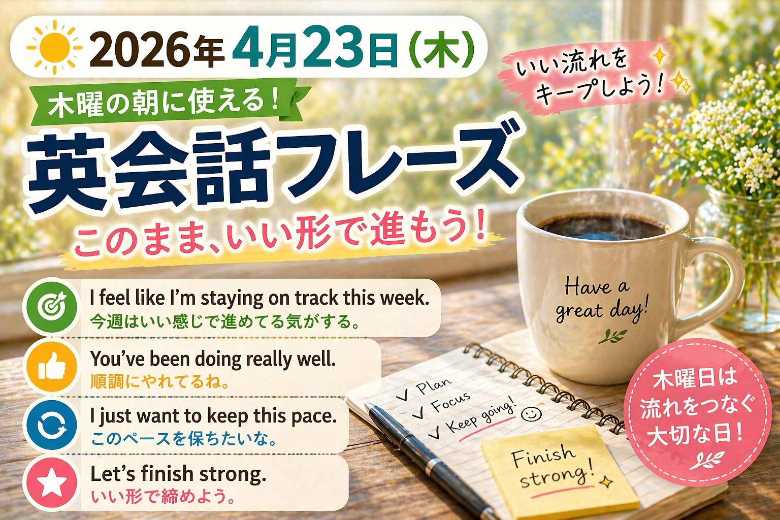 今日はそんな流れに乗っている木曜の朝にぴったりな英会話フレーズをご紹介します。