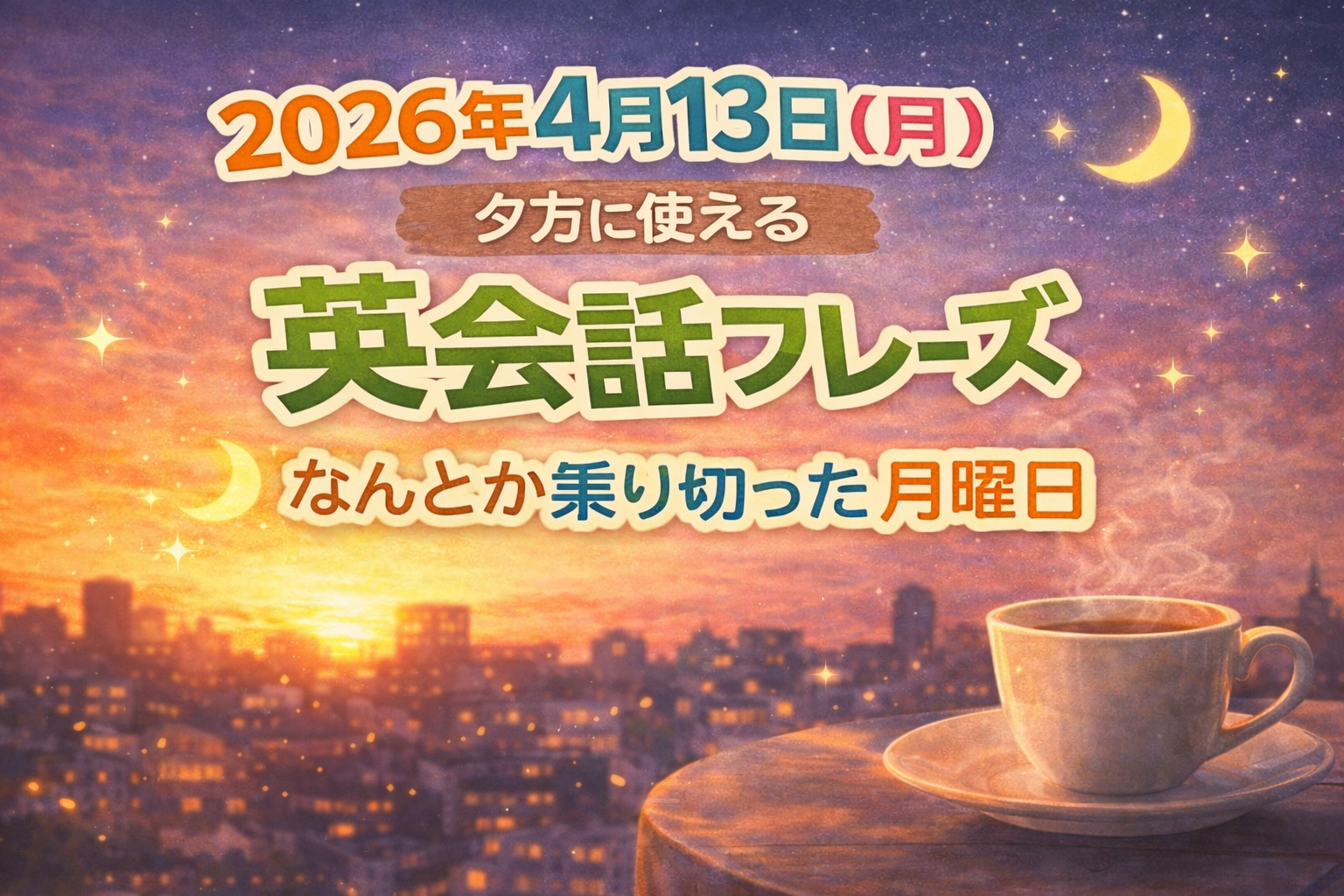 夕方や夜の定番フレーズ。会話のスタートにぴったりです。