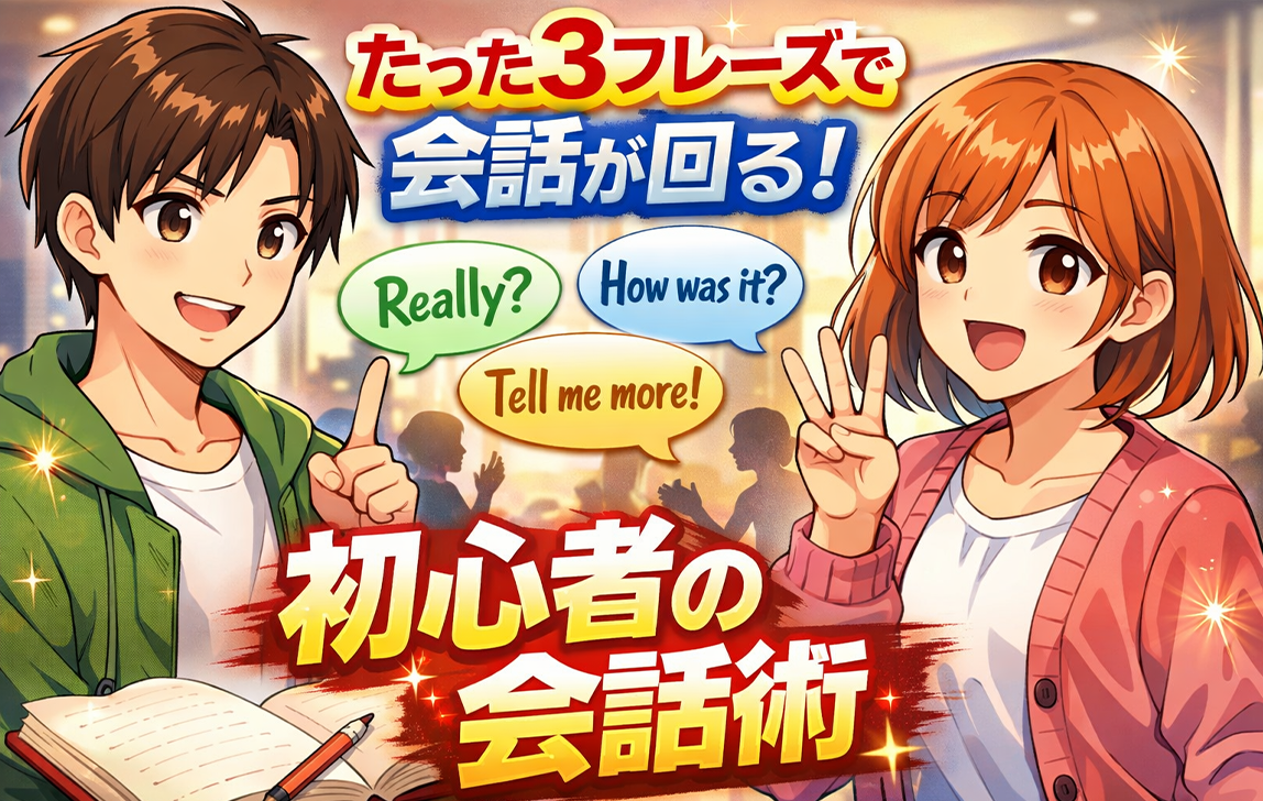 英会話初心者でも、たった3つのフレーズで会話は回ります。